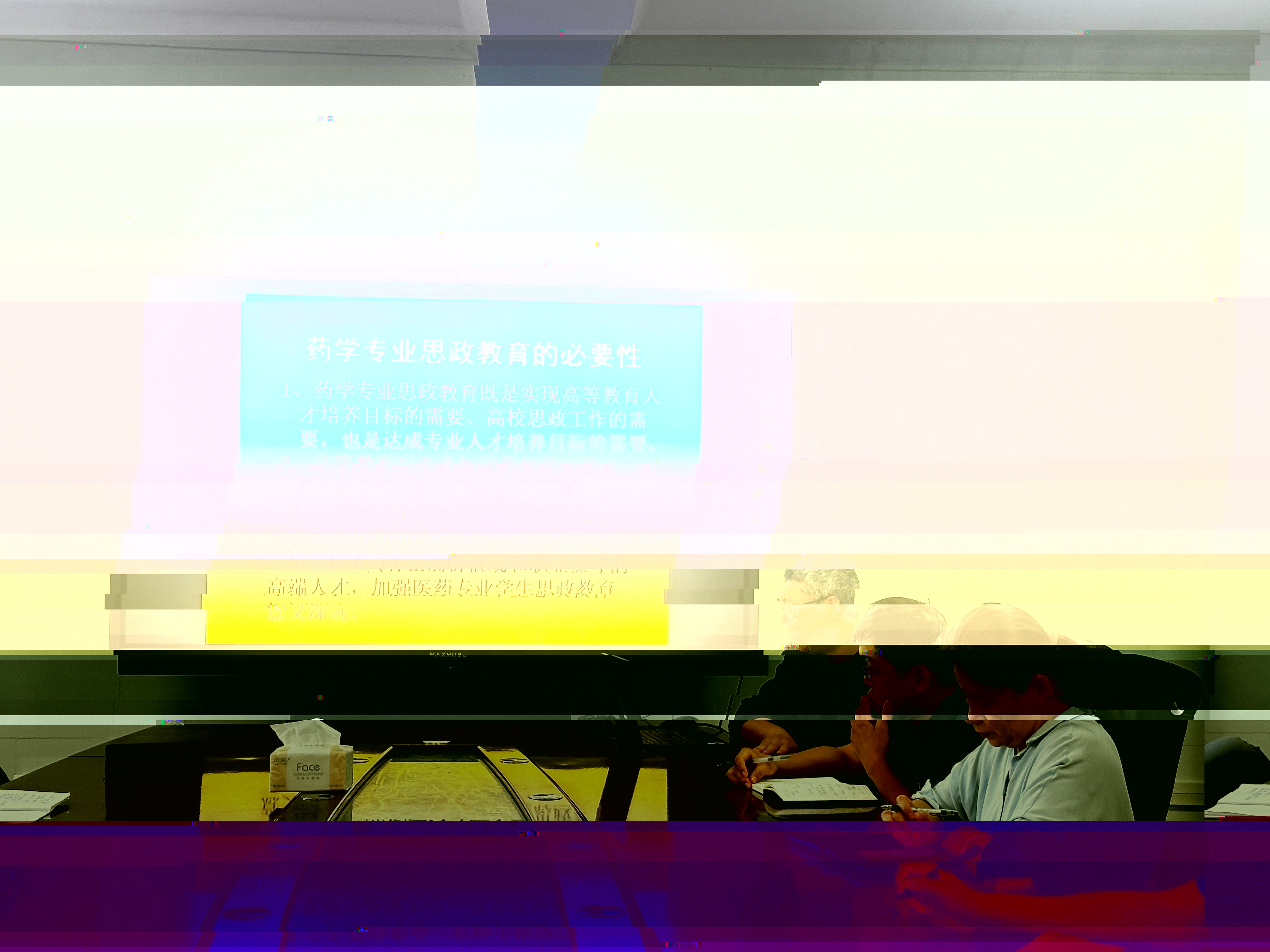 藥學系主任楊華老師在會上作《“事-理-德-人”為主線的課程思政教學方法改革研究與經驗交流》報告。重點圍繞課程思政建設的必要性、思政課程思政資源庫建設、考核評價體系和課程思政示範課建設等方面進行了經驗分享和交流。還重點針對《藥劑學》課程中思政元素的挖掘和融入進行了案例講解。讨論會上,吳黎川副教授就課程思政項目申報和建設進行了經驗分享,還針對課程思政中授課教師的育人情懷分享了自己的感悟和認識。劉坤鵬副教授結合《組織胚胎學》課程中思政元素的挖掘和教學方式,給大家介紹了自己的經驗。朱曉鵬老師以優秀課程思政示範課《土木工程材料》為案例帶領教師們進行了集體學習,圍繞學習情況,大家就課程思政元素挖掘、案例庫建設、教學技巧展開了熱烈的讨論。