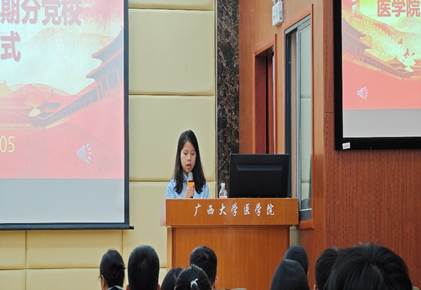 來自本科藥學241班的入黨積極分子培訓班學員代表黃秋倩同學和來自本科藥學231班的發展對象培訓班學員代表朱婷婷同學依次發言。她們通過自己的學習經曆和體會,深刻感悟到,黨課的學習不僅是一次知識的積累,更是一次思想的洗禮和靈魂的升華。激勵同學們要用心去感受黨的精神力量,用行動去踐行黨的宗旨。并代表分黨校學員承諾:将珍惜每一次黨課培訓的機會,端正學習态度,嚴格遵守各項紀律和要求。以飽滿的熱情和堅定的信念,完成黨課的學習,向着成為一名合格的共産黨員的方向不斷邁進。