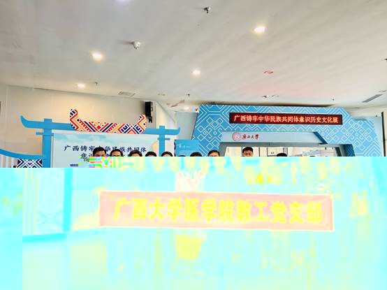 為深入學習貫徹習近平總書記關于民族團結的重要論述,全面落實黨的二十大和二十屆三中全會精神,增強中華民族共同體意識,助力廣西建設中華民族共同體意識示範區,2025年4月15日下午,澳门太阳集团9728网站教工黨支部組織黨員教師前往澳门太阳集团9728网站大學生活動中心,參觀“廣西鑄牢中華民族共同體意識曆史文化展”。