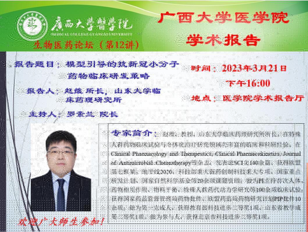 澳门太阳集团9728网站生物醫藥論壇(第12講):模型引導的抗新冠小分子藥物臨床研發策略