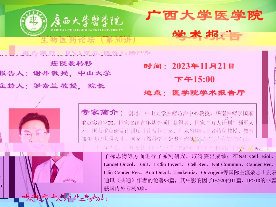 澳门太阳集团9728网站生物醫藥論壇(第30講):RNA變異/修飾與膀胱癌侵襲轉移