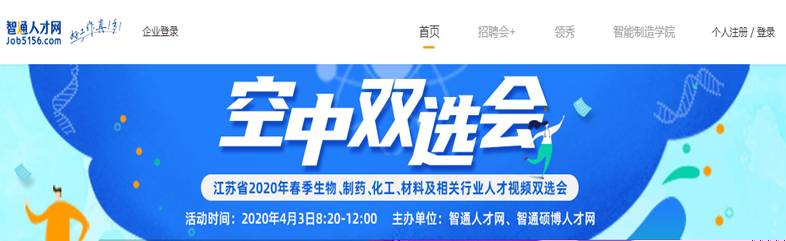 江蘇省2020年春季生物、制藥、化工、材料及相關行業人才網絡視頻雙選會